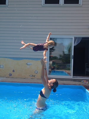 Right after the parade we went swimming at Vicki's pool with the family (we missed having Grandpa, Alyssa, and Derek around though). Then we headed over to my mom's for more swimming and more food! We finished the day off with fireworks from my mom's deck. No daddy this year since he had to work but Lahna loved the fireworks as long as my hands were over her ears. She can be such a bulldozer but some things she is so "delicate" about.